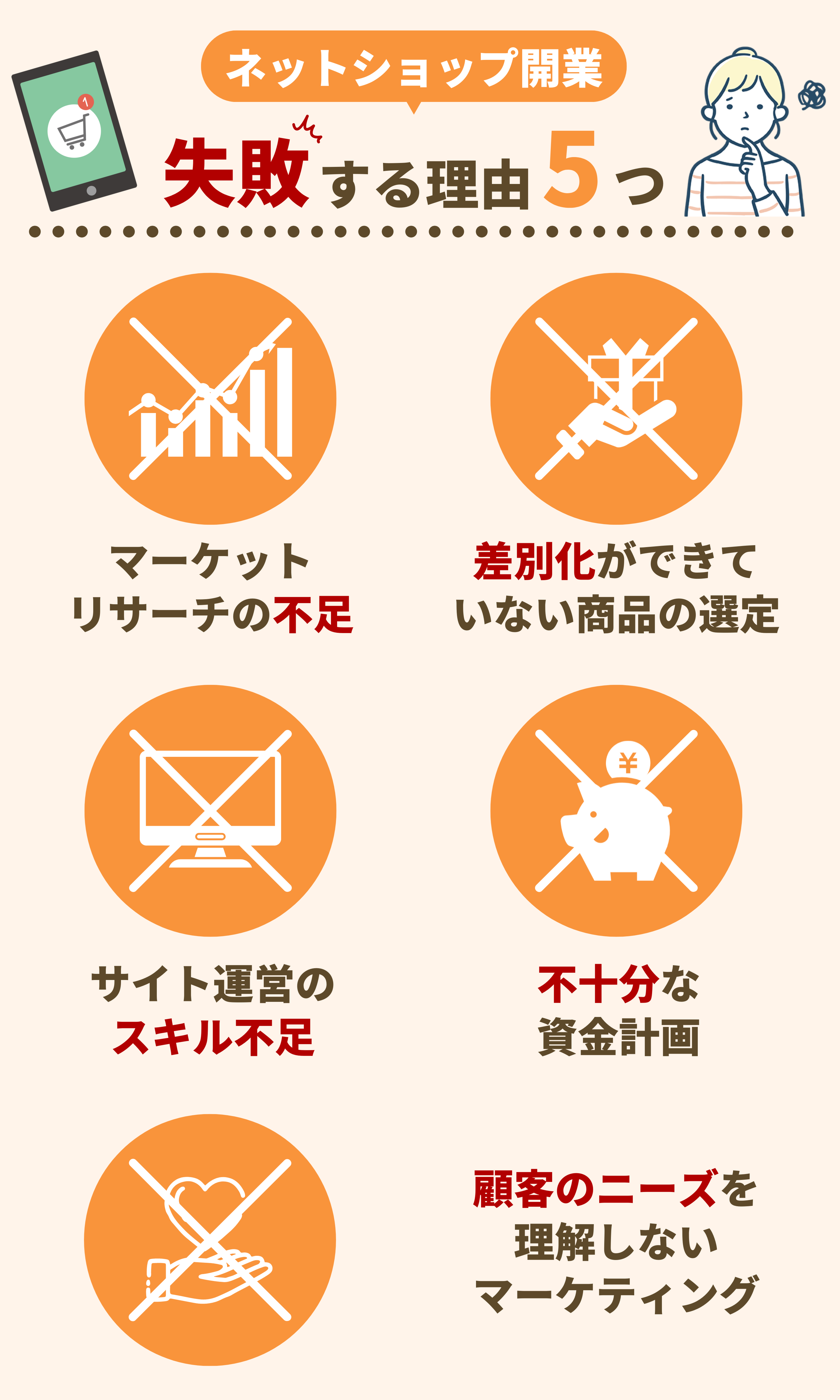 【ネットショップの開業で失敗する理由5選】事前準備や回避策を知って成功率を高めよう!