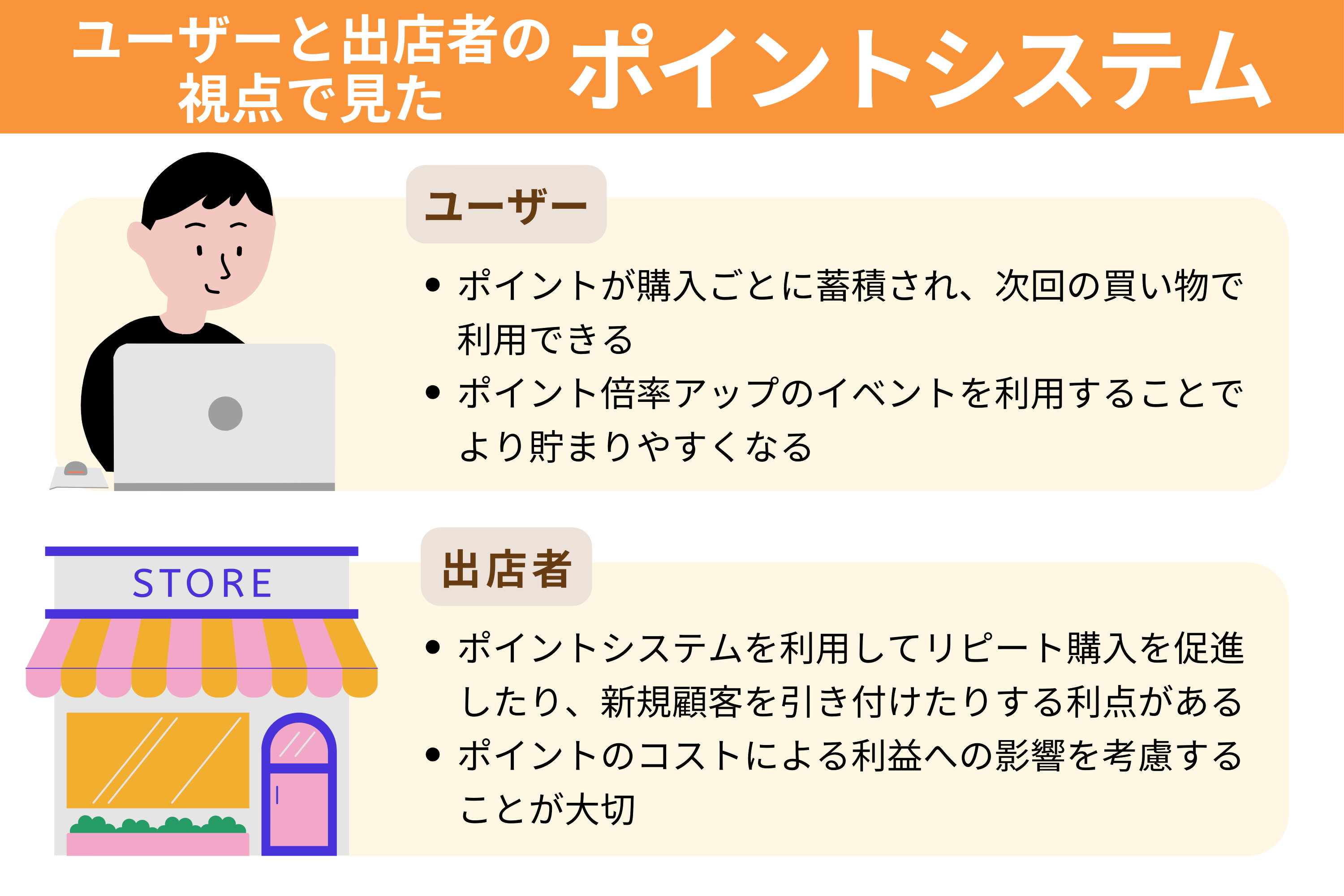 ポイントシステムは顧客のショッピング体験を向上させる一方で、出店者にとっては商機を広げる道具となり得ます。ポイントシステムの運用方法を正しく理解し、適切に活用することが非常に重要です。