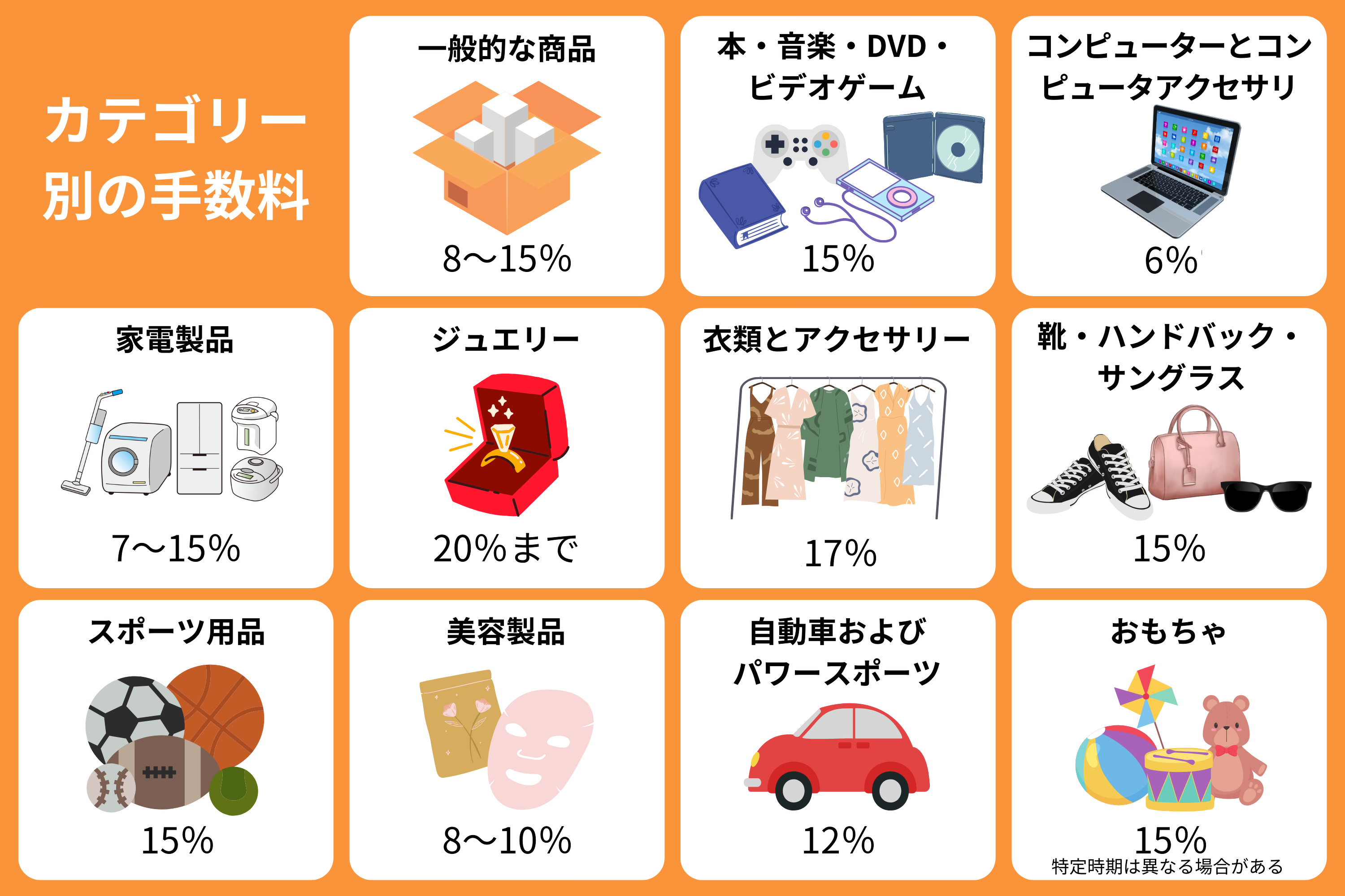 販売手数料は商品価格とカテゴリーに基づいて計算されます。カテゴリーによって最低販売手数料が設定されているケースもあるので注意が必要です。