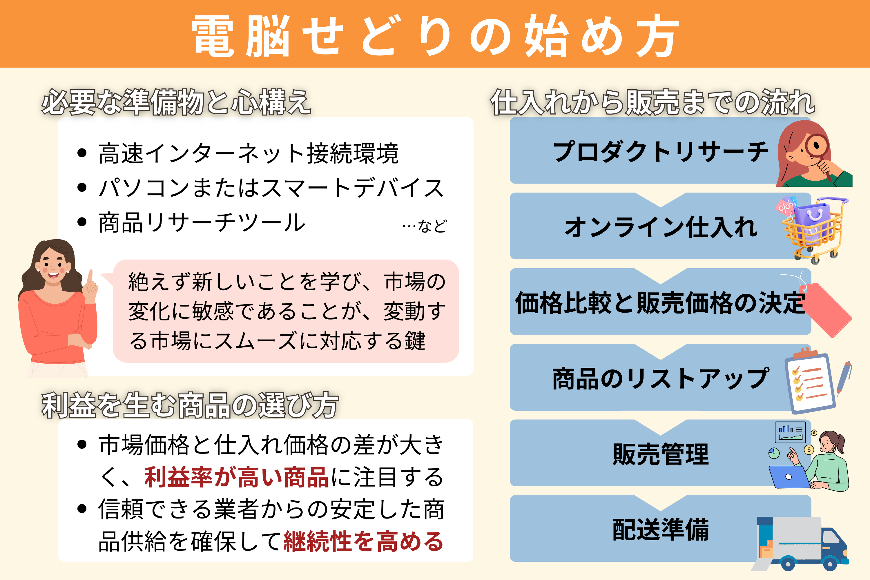 電脳せどりを始めるには、事前の準備が成功のカギを握ります。必要な準備は以下のとおりです。