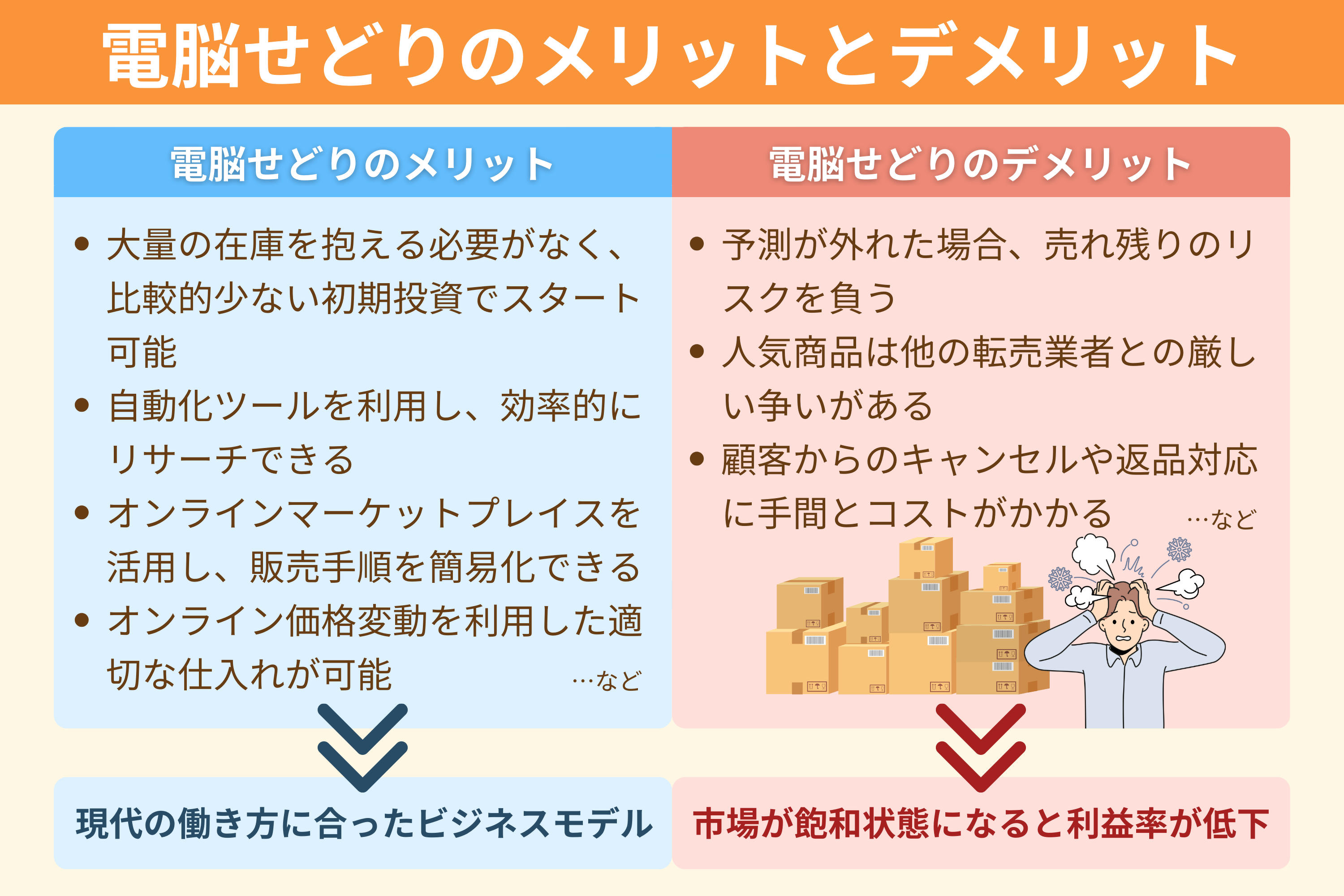 電脳せどりには覚えておくべきメリットとデメリットがあります。成功のための方法やポイントをしっかり理解して、安心して電脳せどりを始めましょう。