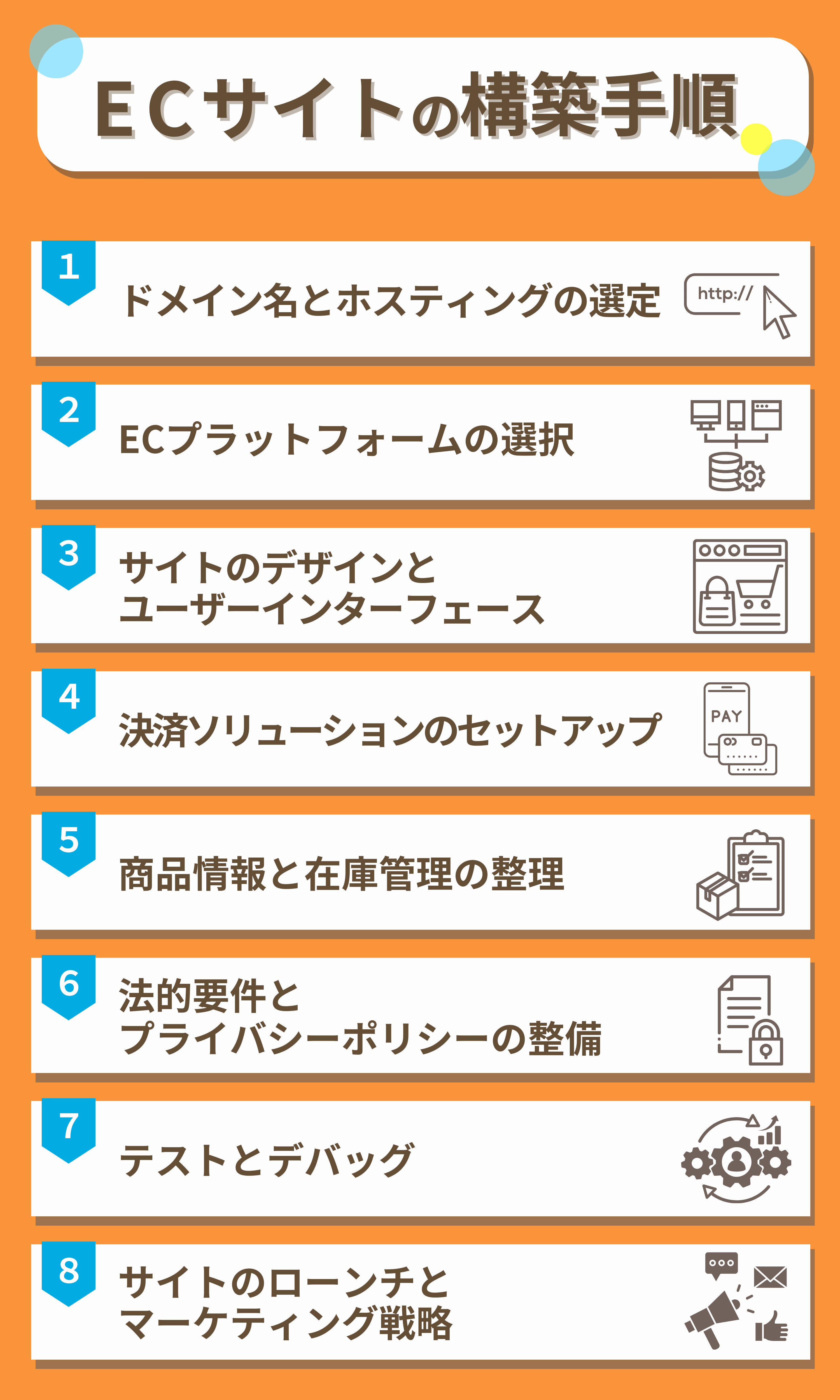ECサイト構築には、複数の重要なステップが存在します。ビジネスを成功へ導くためにはそれぞれのステップにおける慎重な判断と、計画的な進行が必要です。
