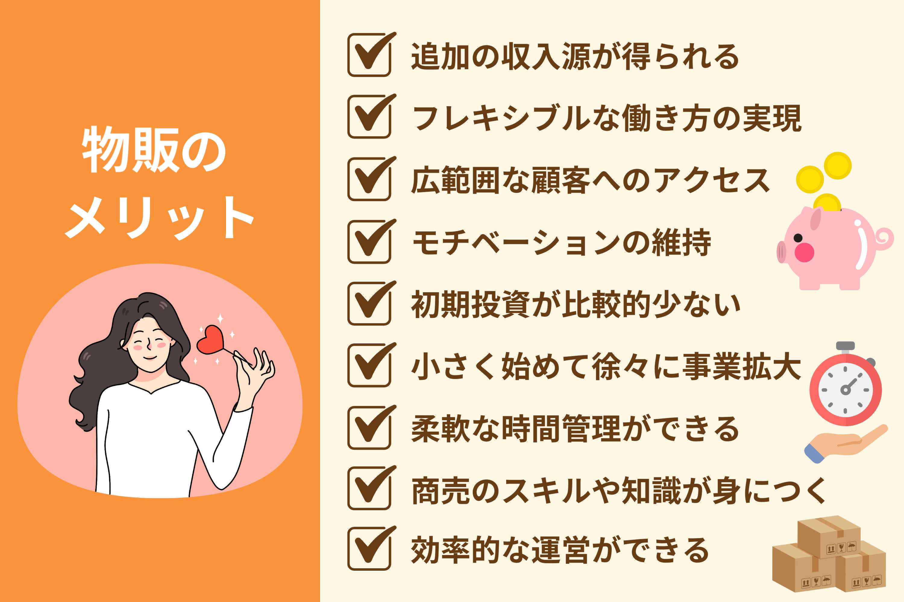 物販はそのメリットから副業として人気です。物販のメリットは以下のとおりです。