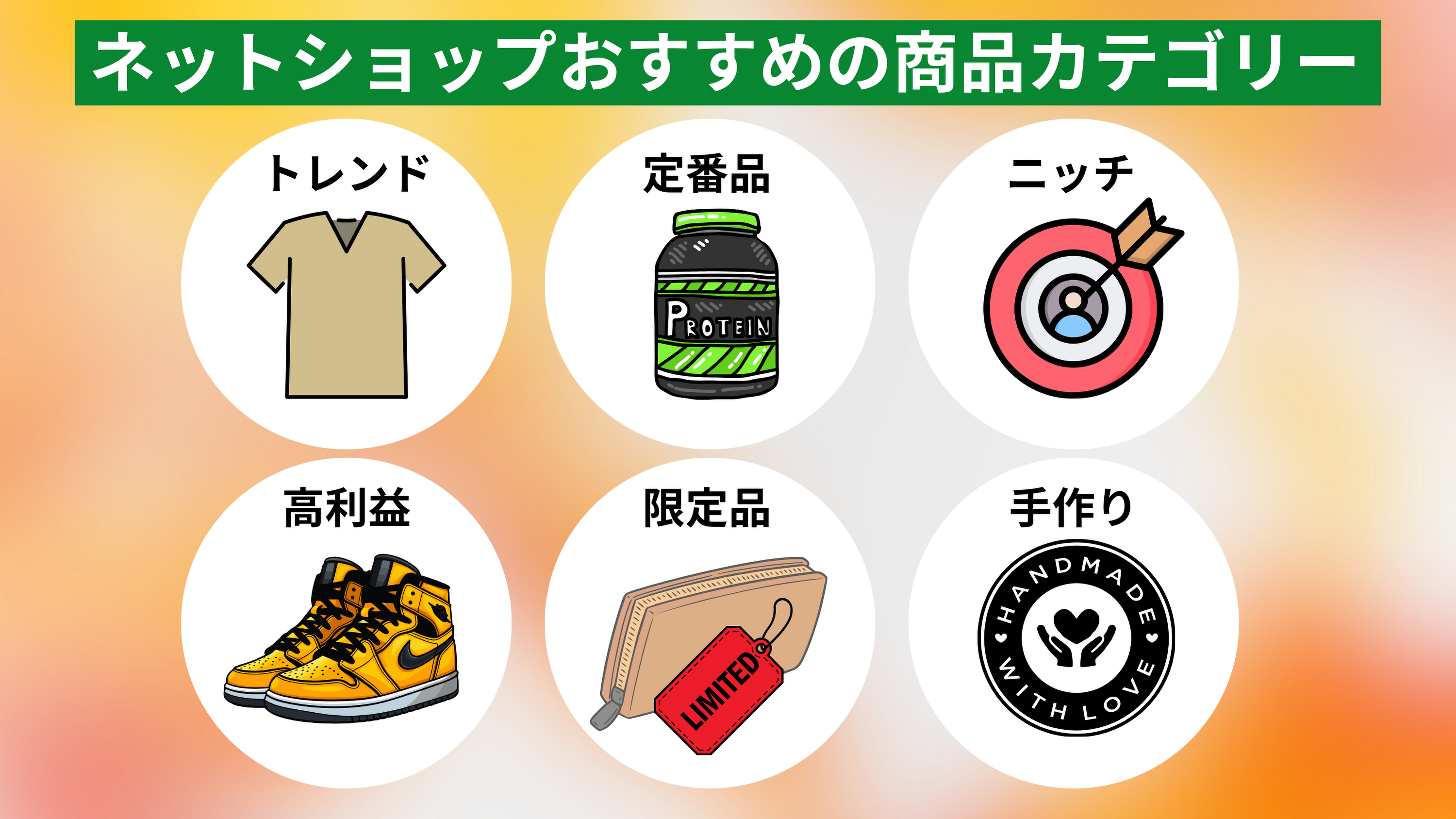 ネットショップでは、商品カテゴリー選びが重要なステップです。適切な商品カテゴリーを選ぶことで、ターゲットとする顧客層に適した商品を提供できるため、売上の増加につなげられます。以下の商品カテゴリーがおすすめです。
