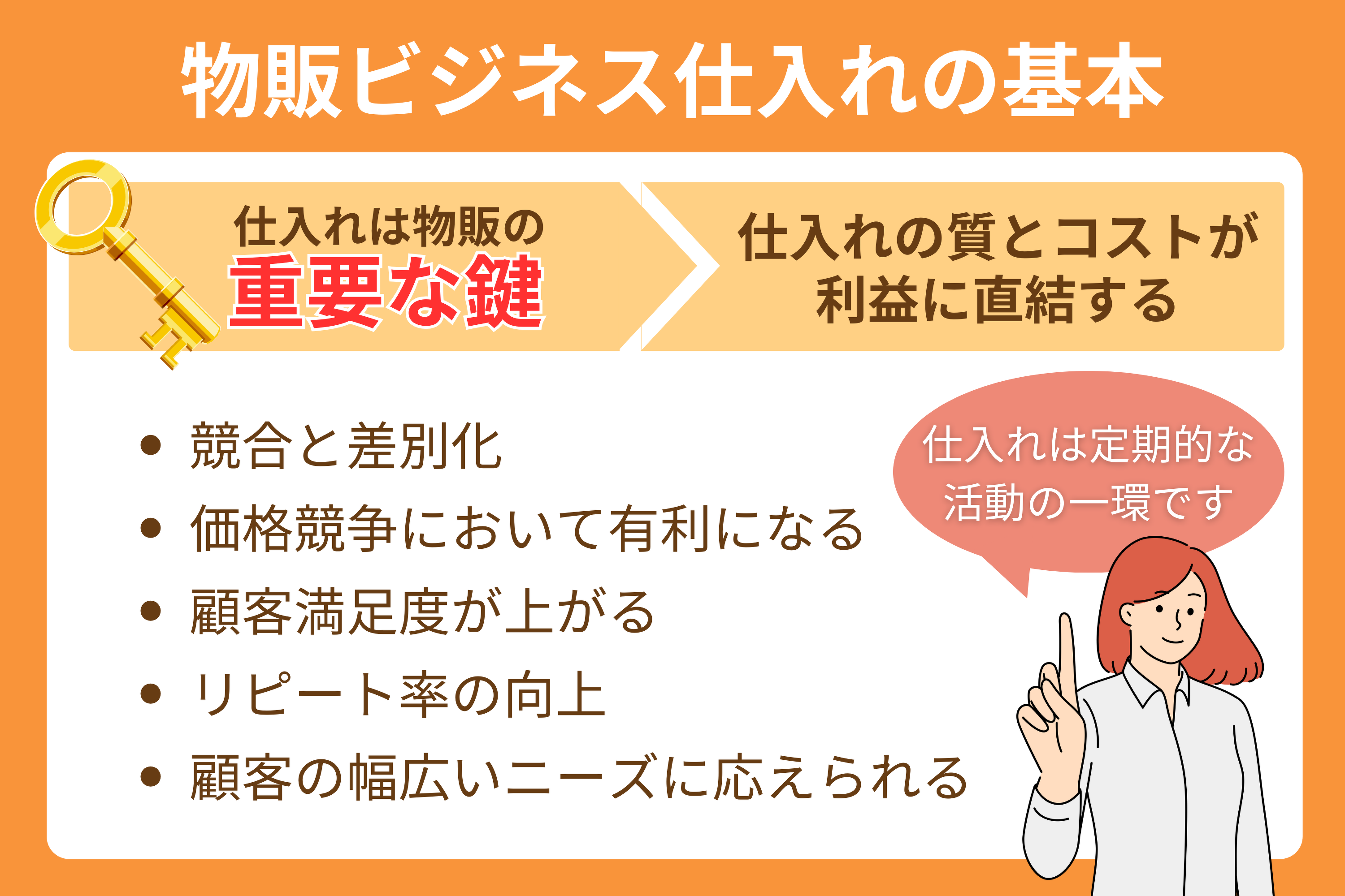 物販ビジネスで成功するためには、適切な仕入れ戦略を立てることが重要です。仕入れはコストと直結しており、利益率に大きく影響するからです。ビジネスを成功させるポイントは以下のとおりです。