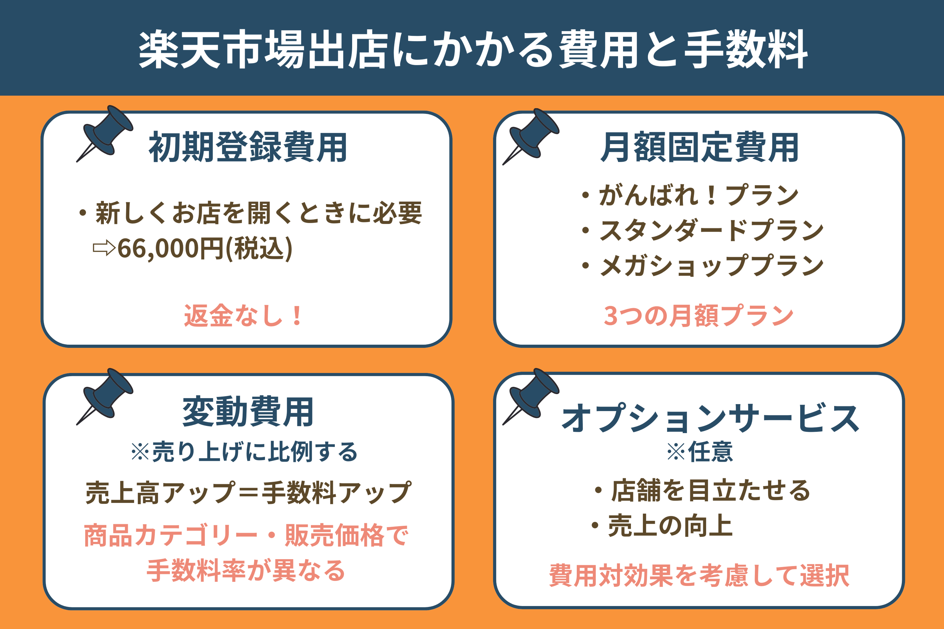 楽天市場の出店にかかる手数料の種類は以下のとおりです。