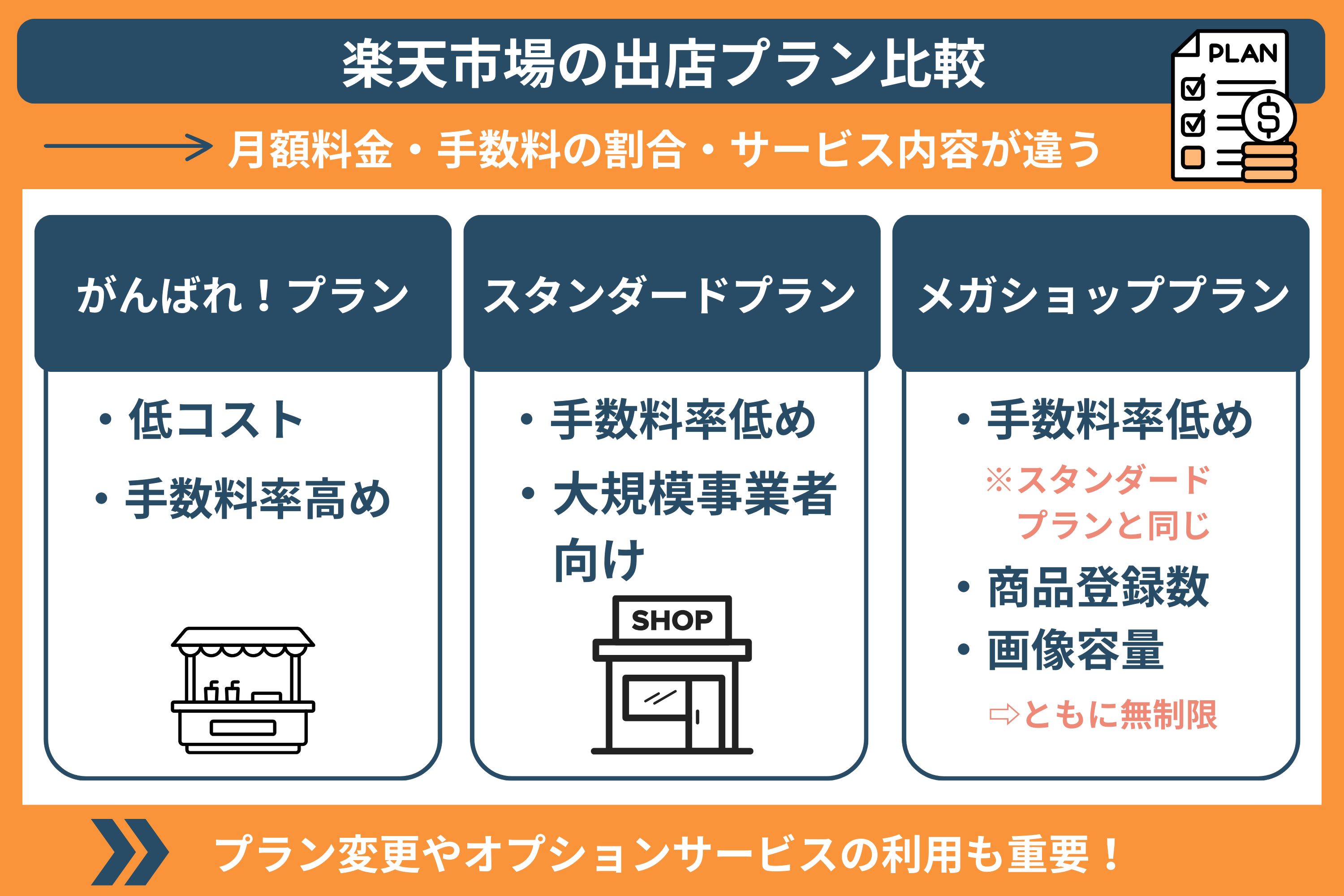 楽天市場の月額固定費用はプランによって異なります。楽天市場での月額プランは以下のとおりです。