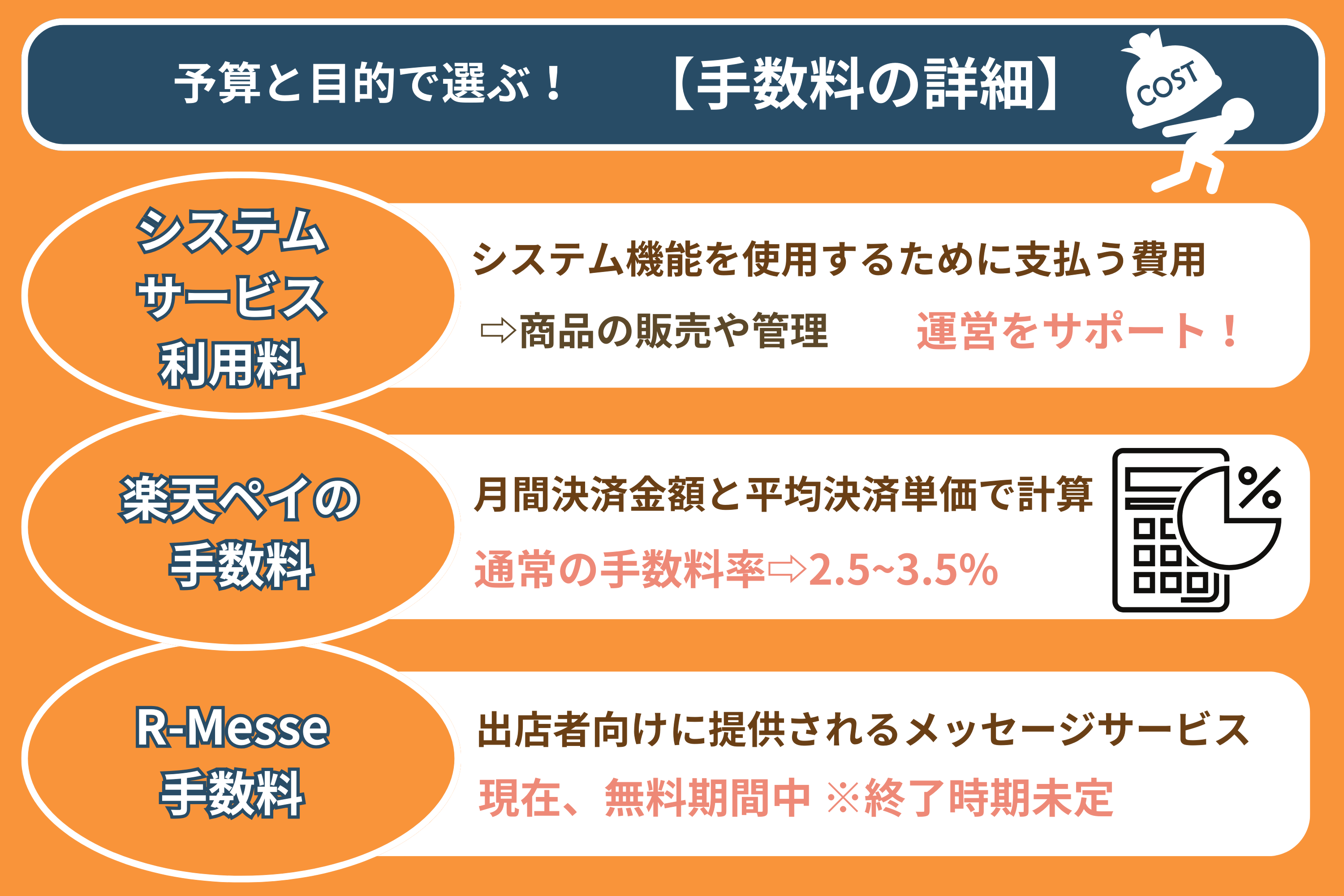 楽天市場に出店する際には、費用の構成を理解することが重要です。主に以下の費用が発生します。