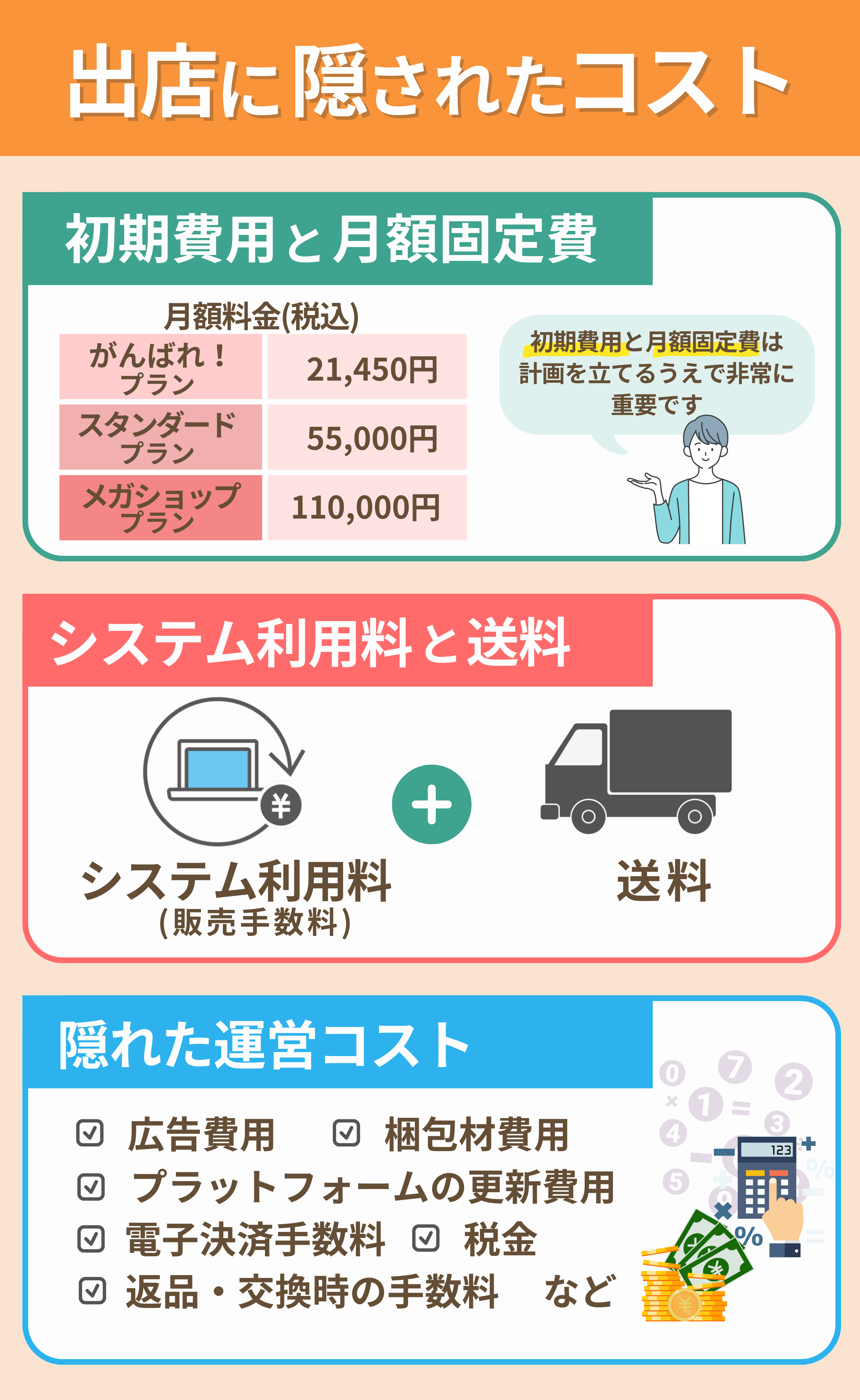 楽天市場への出店を検討する際、継続してショップを運営し収益を上げるためには、コストを把握し、計画に組み込む必要があります。