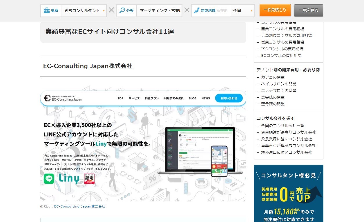 該当記事「ECサイト向けで実績豊富なコンサルティング会社18選」