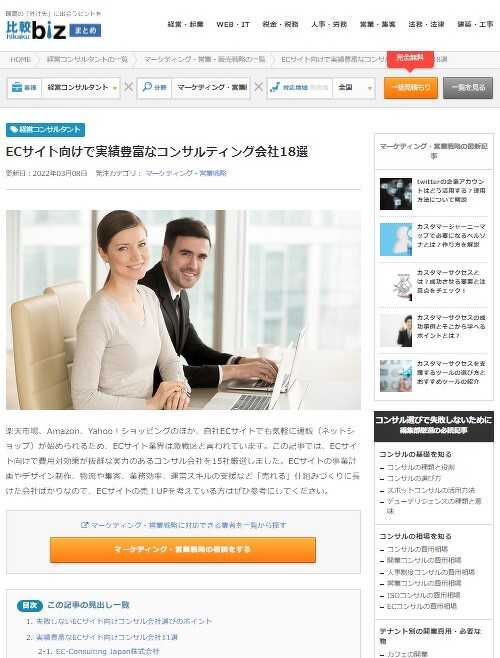 「ECサイト向けで実績豊富なコンサルティング会社18選」に掲載されました。