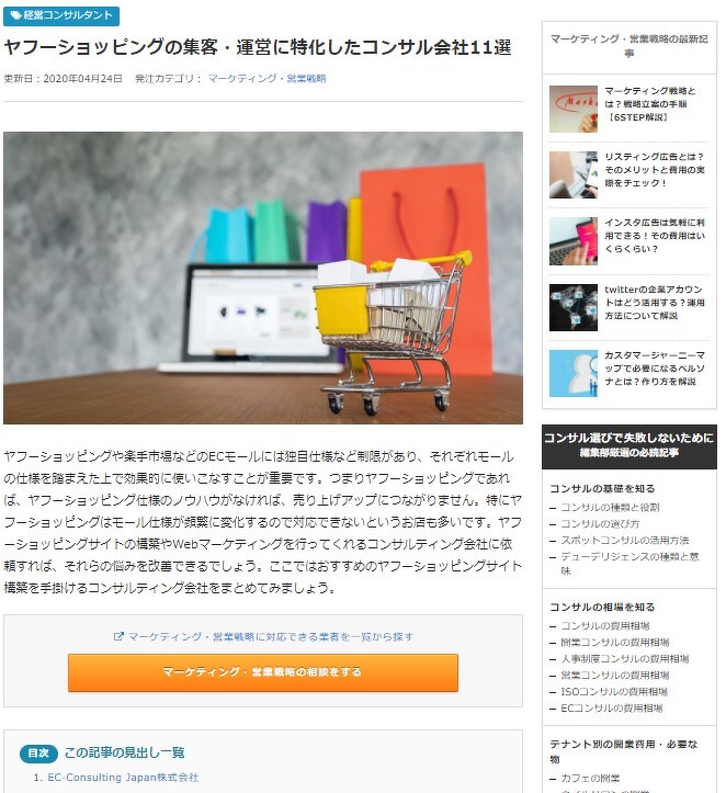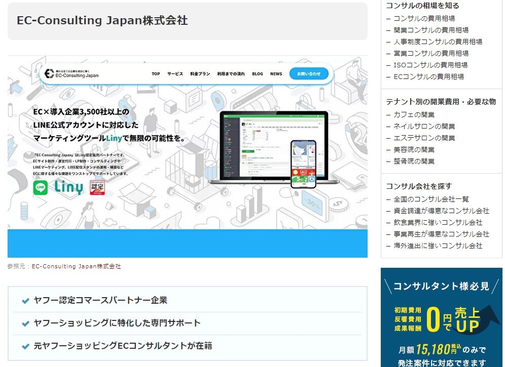 該当記事「ヤフーショッピングの集客・運営に特化したコンサル会社11選」