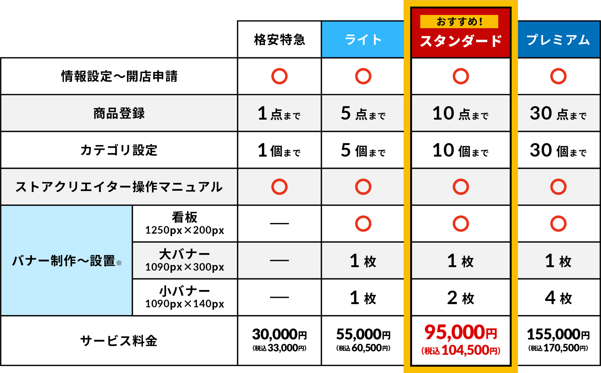 - 上位プラン程バナーの作成数が増えてリッチストアデザインとなり、訴求力が高まります。