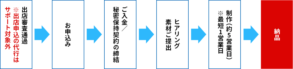 看板・バナー作成→看板・バナ一設置(PC,スマホ)→開店申請に必要な手続き一式まで全て弊社にて行います。